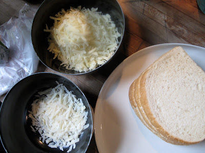 Melt butter over a low heat in a small pan, then add flour and whisk for 2 minutes. Slowly pour the hot milk into the mix and continue to whisk until thick, about 5 minutes. Take off the heat and add salt, pepper, nutmeg, two handfuls of the Gruyere and all of the Parmesan.